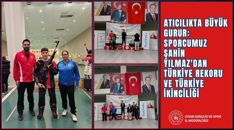 10-15 Mart 2026 tarihleri arasında Mersin’de düzenlenen Havalı Silahlar Coşkun Abış Kupası’nda, Aydın Gençlik ve Spor İl Müdürlüğü Spor Kulübü sporcumuz Şahin Yılmaz, U-18 Havalı Tüfek Erkekler kategorisinde Türkiye rekoru kırarak tarihi bir başarıya imza attı.